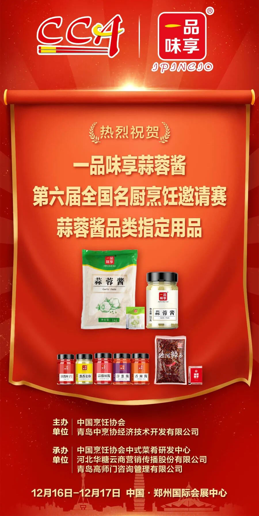 Während des 6. National Chef Cooking Invitational Competition hinterließ IPINCIO-Knoblauchsauce als ausgewiesenes Zubehör für den Wettbewerb durch den tatsächlichen Kontakt und Einsatz von Eliteköchen in der Catering-Linie einen tiefen Eindruck bei ihnen und wurde weithin als Produkttreue anerkannt Catering-Kanal stark verbessert.Durch die Mundpropaganda zwischen berühmten Köchen wird ein Geschmack von Knoblauchsauce die Entwicklung des nationalen Catering-Marktes beschleunigen, lassen Sie uns gemeinsam erwarten!